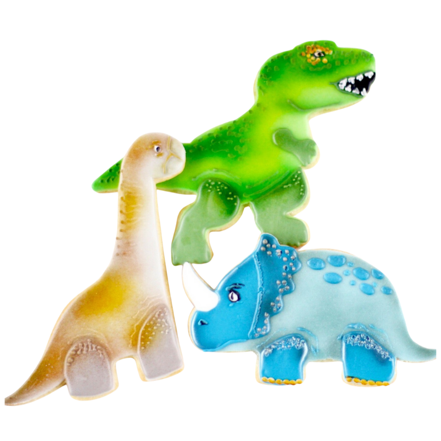 A STOMP in the right direction for any Dinosaur themed party! These popular Dino Trio cookies are full of texture and airbrushed to give an realistic look!