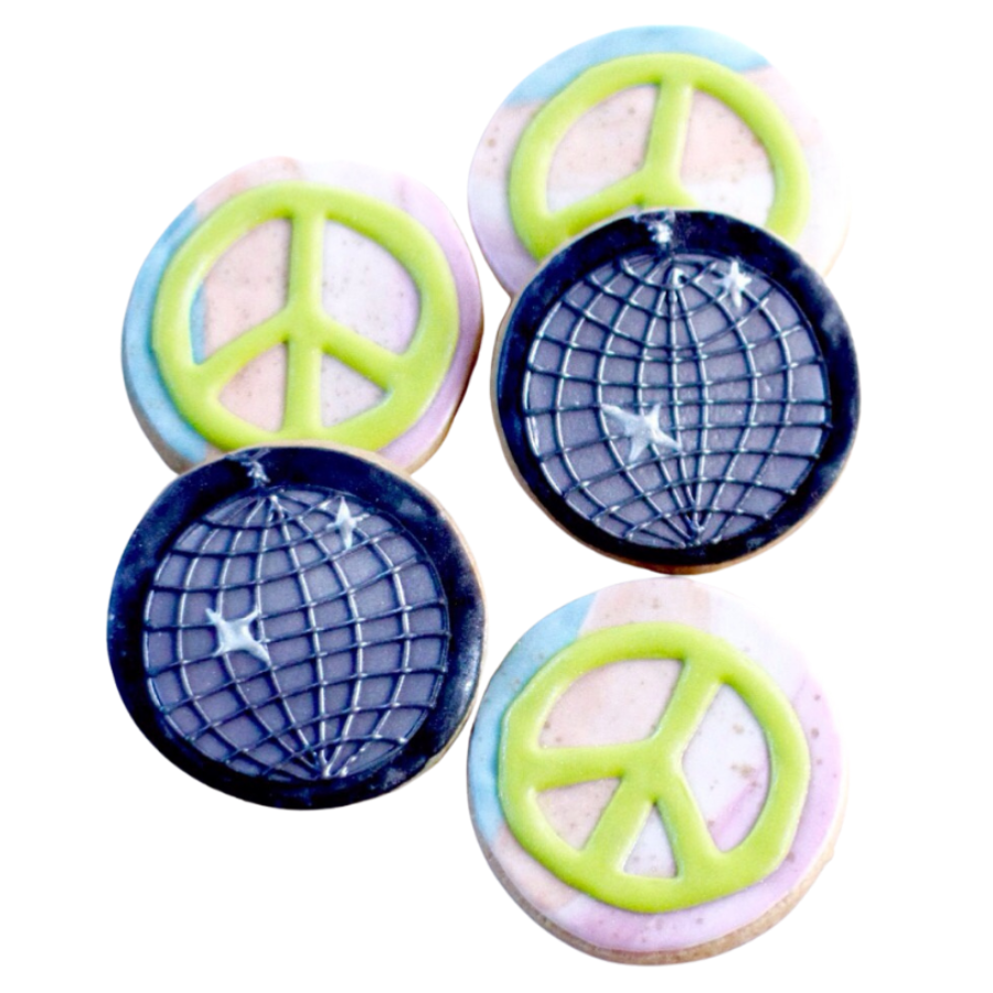 These colorful cookies are perfect for the tree hugging hippy, party lover, ocean enthusiast, or civil rights activist! Save the world, one bite at a time!